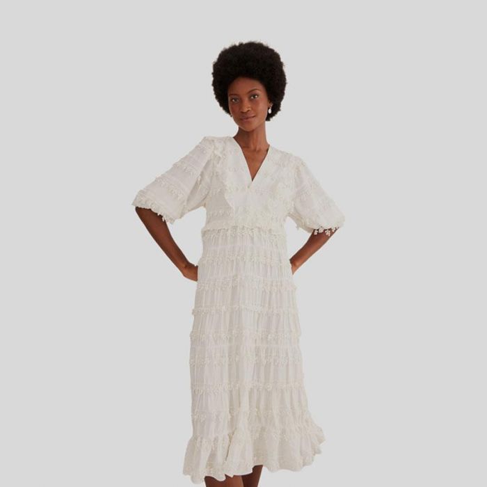 RUFFLES TRIM MIDI DRESS - فستان