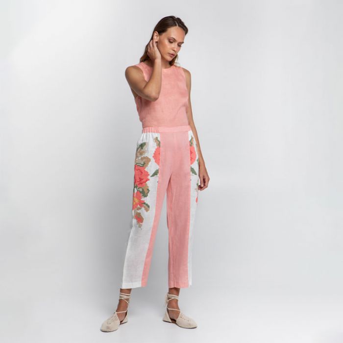 PANTS ROSE ELASTICATED WAIST TWO-TONED - بنطلون