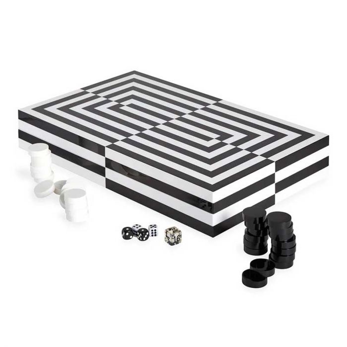 OP ART BACKGAMMON SET BLACK/WHITE 18.5Wx11.25Lx4.5H: JONATHAN ADLER - ملحقات الألعاب